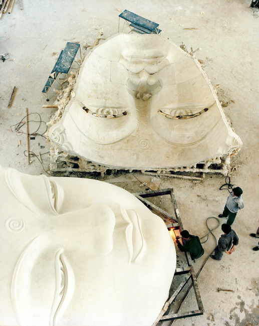 放樣採用的是一種獨特的「數控箱式一次成形法」,即工程技術人員對一比五的模型採用立體攝影,找出佛像在空間的位置,確定3,900個座標點,用電腦運算放大;又沿用傳統方法,分段內層做木箱,外層塗石膏,塑出一比一模型。