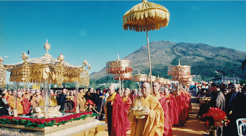 1989年10月13日, 大佛最後一塊銅壁安裝完成,當日並舉行了莊嚴的圓頂儀式,這個建造耗時三年,凝聚了信眾、佛教界人士、藝術家、技術工程人員等人的無數心血,大佛卒告完成。