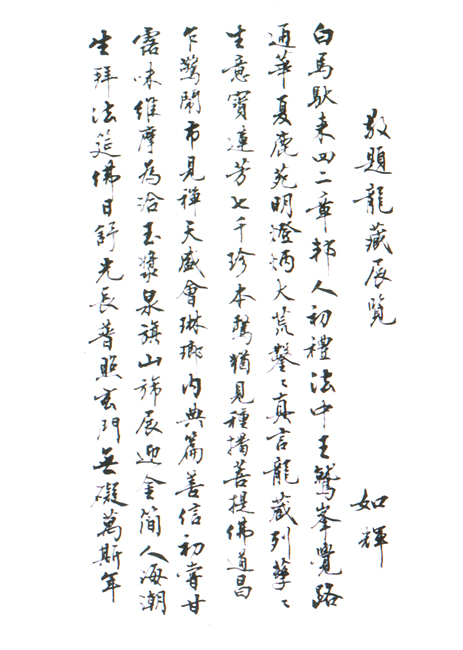 「龍藏」乃是我國最後雕刻的一部大藏經,以其經板尚存,彌足珍貴,也是世界佛教之寶貴遺產,值得我國佛教徒自豪。希望這部漢文大藏經和它的經板,常住世間,啟發世人之智慧,到達彼岸。