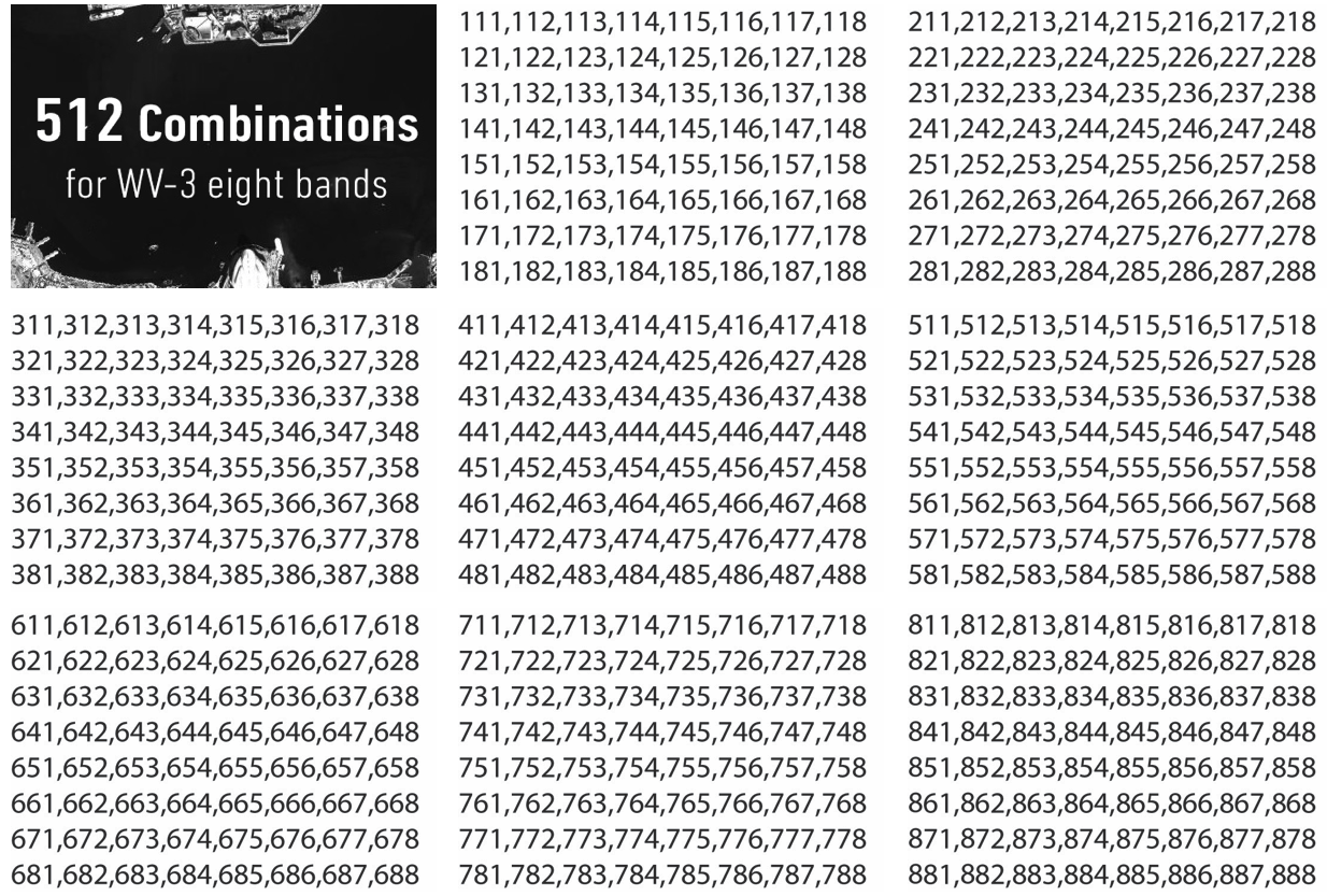 Try to find those common WorldView-3 band combinations now!
