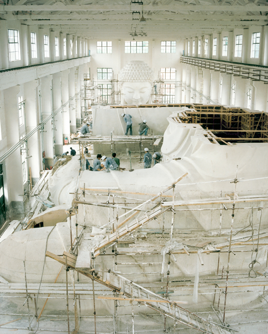 放樣採用的是一種獨特的「數控箱式一次成形法」,即工程技術人員對一比五的模型採用立體攝影,找出佛像在空間的位置,確定3,900個座標點,用電腦運算放大;又沿用傳統方法,分段內層做木箱,外層塗石膏,塑出一比一模型。