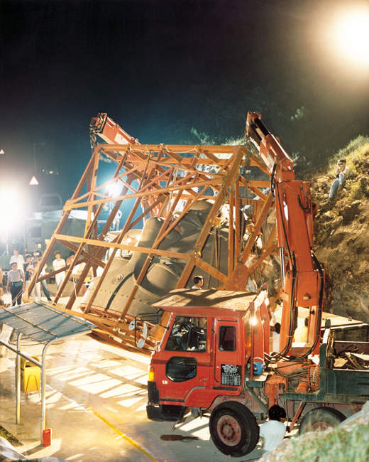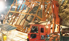 其後得到運輸署協助,經過周密安排,用一輛大卡車居中,前後各用一輛吊車協助,終於把佛面及另外兩件大青銅壁板運抵工地。