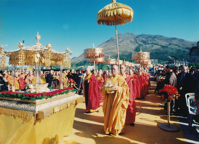 1989年10月13日, 大佛最後一塊銅壁安裝完成,當日並舉行了莊嚴的圓頂儀式,這個建造耗時三年,凝聚了信眾、佛教界人士、藝術家、技術工程人員等人的無數心血,大佛卒告完成。