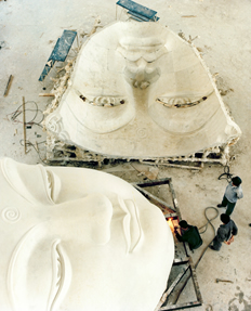 為了充份表現出釋迦牟尼佛的莊嚴德相,和達到完美的藝術造型,專業的技術人員終於克服了技術上的重重困難,將整塊佛面一次澆鑄成功。佛面高4.3米,闊5.8米,厚13毫米,重5公噸。