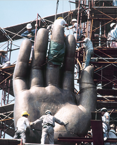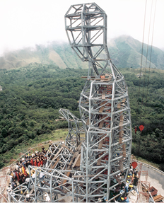 大佛的安裝和焊接由下而上可分八層,焊接焊道超過了5公里,而且工程是在完全露天的環境下進行,其艱巨可以想見。